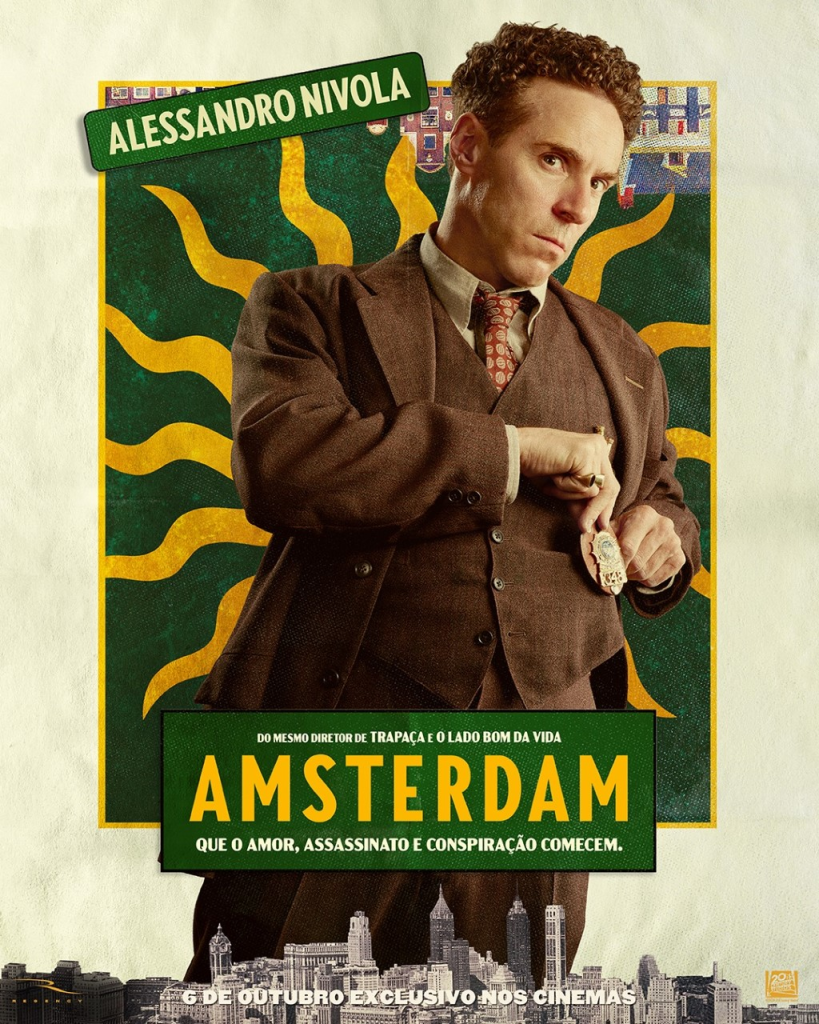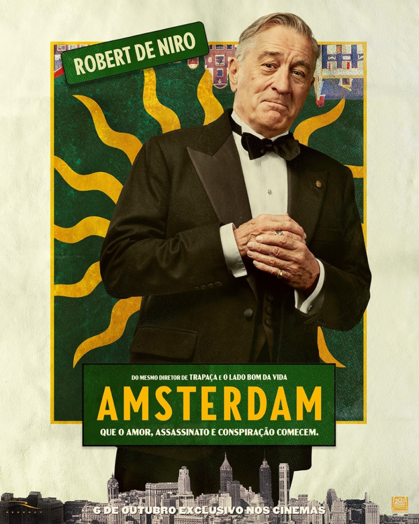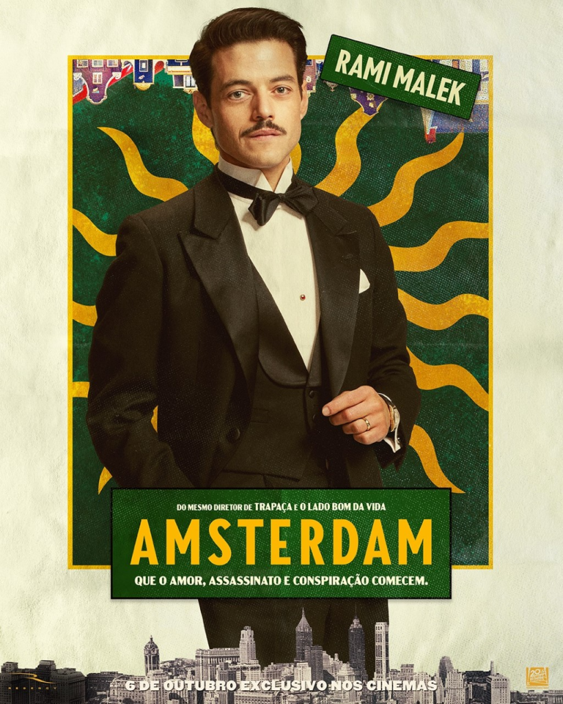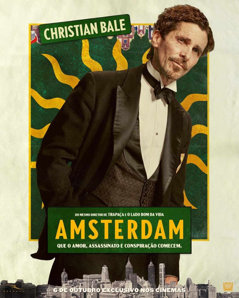 “Amsterdam”, o novo filme da 20th Century Studios, estreia em 6 de outubro exclusivamente nos cinemas, e apresenta a história de 3 amigos que testemunham um crime e se veem envolvidos em uma das tramas mais chocantes da história americana.