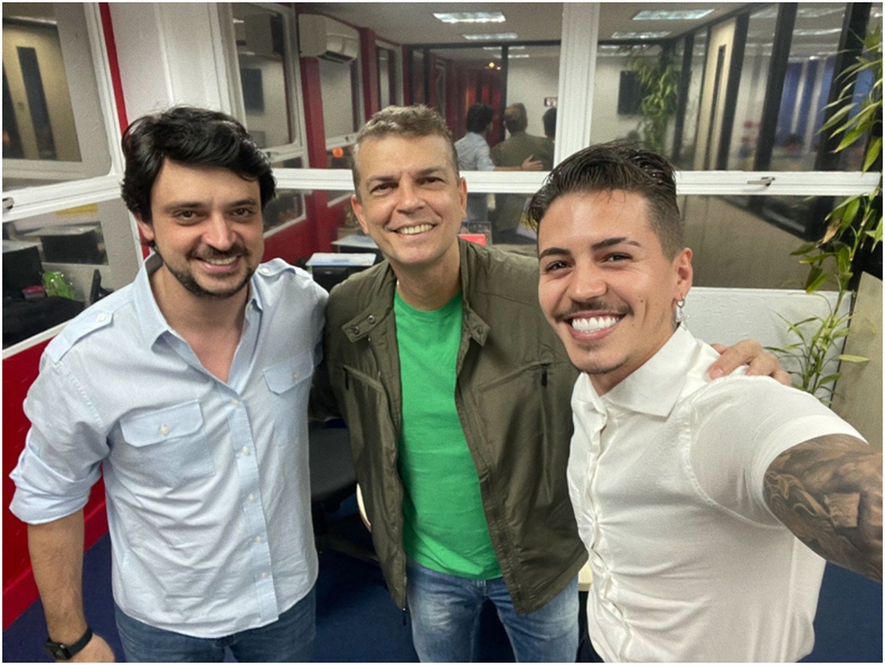 Jayr Sanzone (CEO da Rádio Metropolitana), Waguinho Rocha (diretor musical da Rádio Metropolitana) e Biel Na reta final da espera...