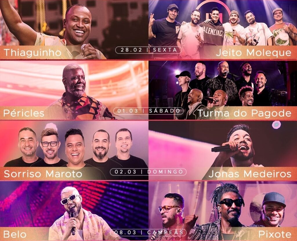 Temas: BeloCamarote Amstel Essepê 2025Jeito MolequeJonas MedeirosPériclesPixoteSorriso MarotoThiaguinhoTurma do Pagode