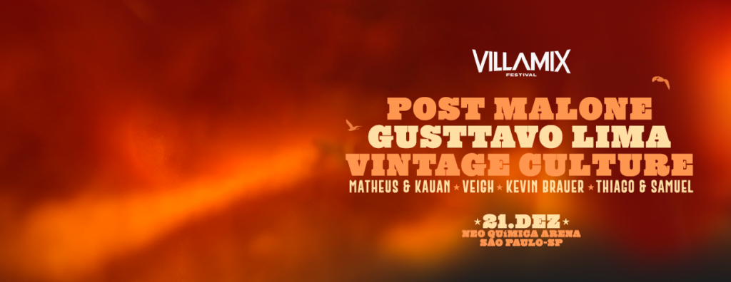 O VillaMix Festival 2024 anunciou seu retorno, trazendo um line-up com grandes atrações nacionais e internacionais. Marcado para o dia 21 de dezembro, o evento será realizado na Neo Química Arena, em São Paulo, e contará com shows de artistas como Post Malone, Gusttavo Lima, Matheus e Kauan, Thiago e Samuel, Veigh, Vintage Culture e Kevin Brauer Band.