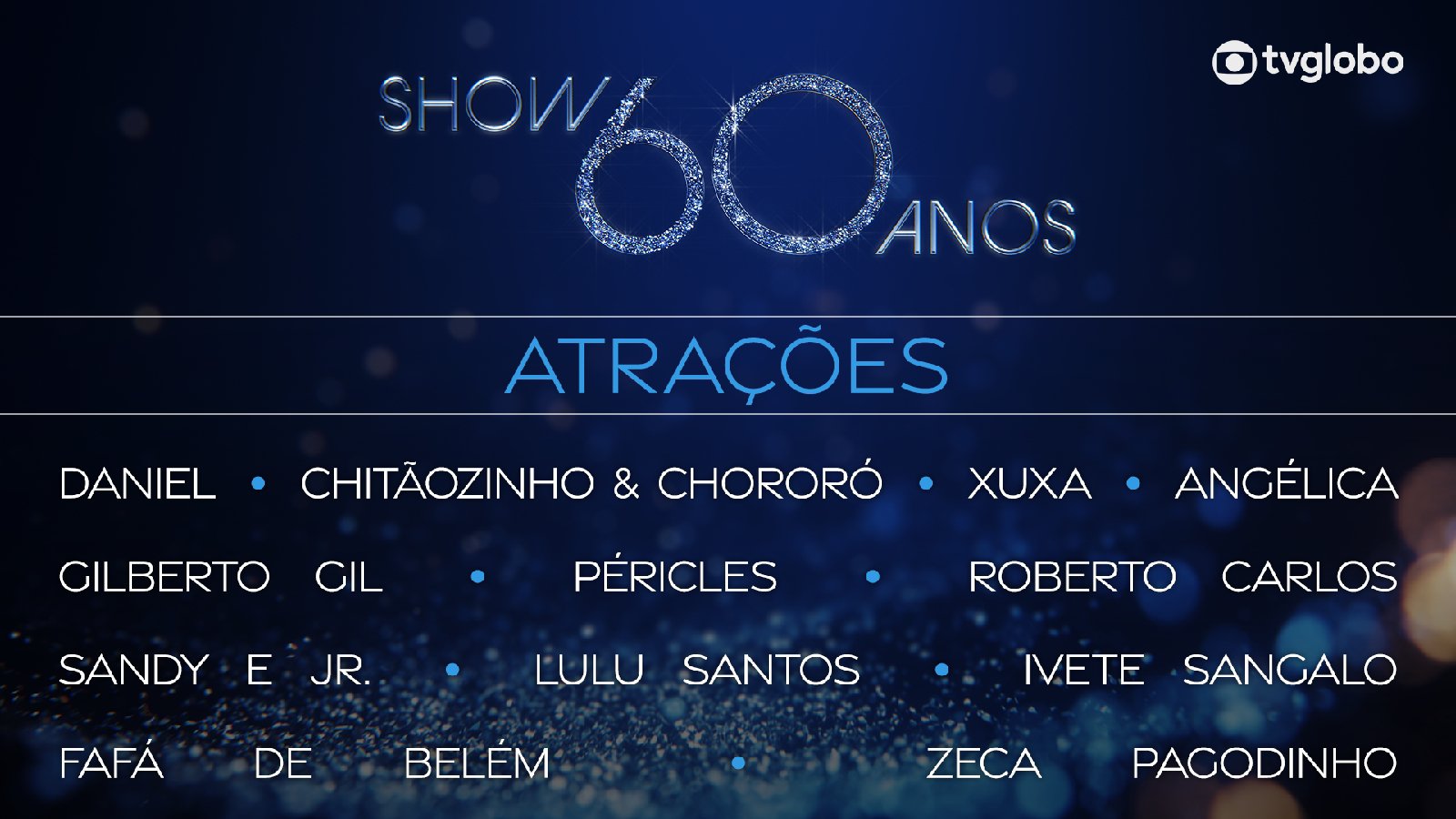 O repertório musical contará com performances de Roberto Carlos, Gilberto Gil, Zeca Pagodinho, Sandy e Jr., Ivete Sangalo, Chitãozinho e Xororó, Angélica, Xuxa, Fafá de Belém, Péricles, Daniel e Lulu Santos. Em um formato colaborativo, o show promove encontros inéditos no palco, com artistas de diferentes gerações celebrando a trajetória da emissora.