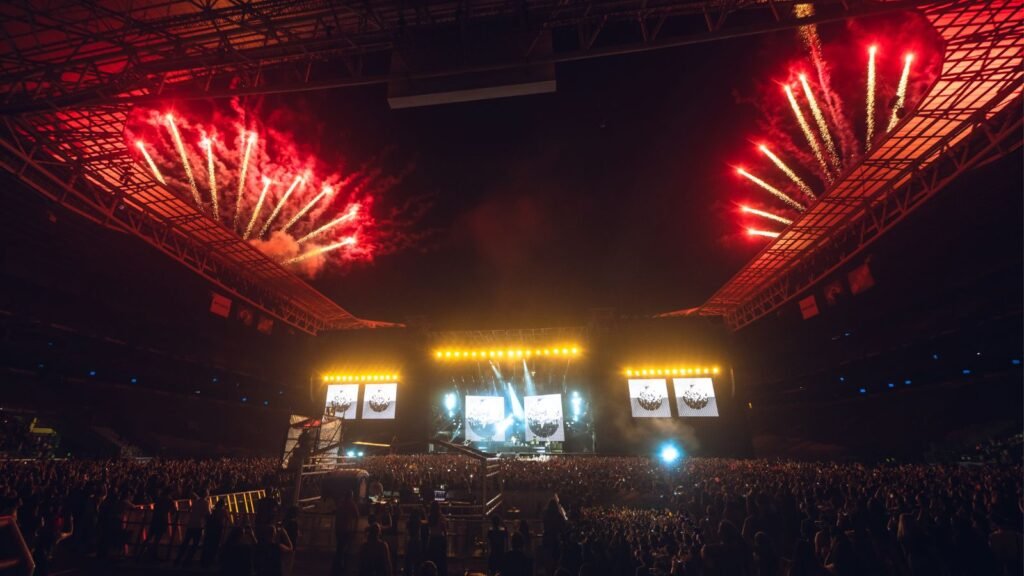 A grandiosidade do espetáculo foi amplificada pela imponente estrutura de palco, repleta de telões e efeitos especiais, enquanto a interatividade com os fãs atingia um ápice emocional na passarela que se estendia como um segundo palco. O cantor com sua habitual timidez e carisma, não hesitou em descer para abraçar alguns fãs, compartilhando momentos íntimos e revelando a conexão especial que nutre com o Brasil.