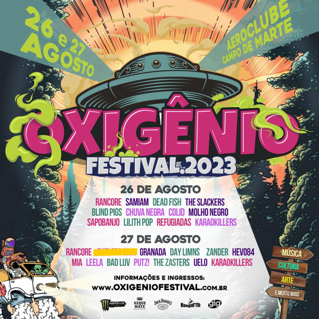 O Oxigênio Festival 2023 é uma realização da Gig Music e do Hangar 110, com apoio da Monster Energy, Xeque-Mate, Jack Daniel’s entre outros