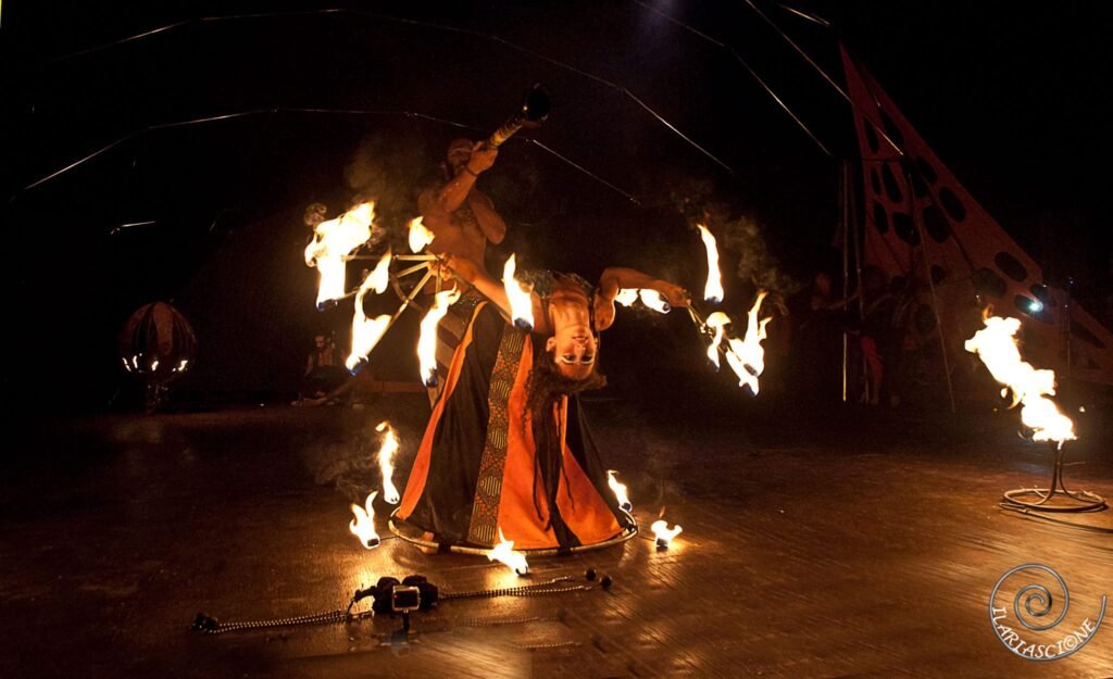 O resultado visual é mágico. Números circenses de alta voltagem poética e energética exploram os recursos e limites do elemento fogo, símbolo da transformação, da luz, dos grandes desafios e ritos, em exibições que reúnem mistério e virtuosismo. A trilha de Alexandre Salomão traz temas ancestrais dialogando com beats contemporâneos, propondo uma alquimia de elementos também através da música.