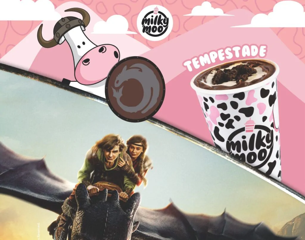 Já a Milky Moo, conhecida pelas criações geladas voltadas ao público jovem, lançou uma edição especial do milkshake Tempestade, com visual repaginado para homenagear o dragão da nova versão. A ação inclui ambientações temáticas nas lojas e distribuição de ingressos para o filme por meio do aplicativo da marca. Ao adquirir dois milkshakes de 500 ml, o cliente garante um par de ingressos enviado diretamente para seu endereço.