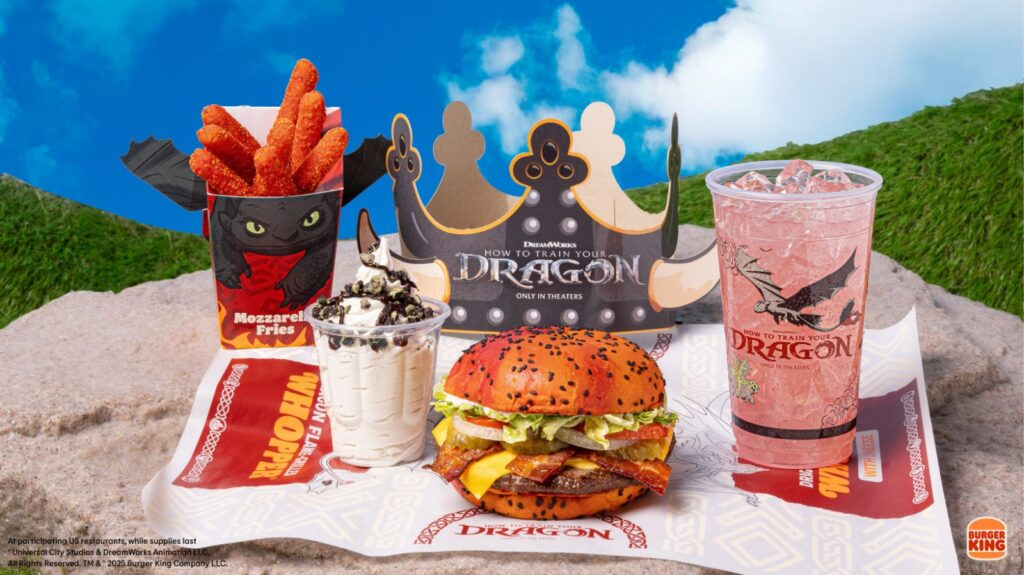 Duas grandes marcas embarcaram na divulgação do filme. O Burger King lançou uma linha especial de brinquedos inspirados no universo de “Como Treinar o Seu Dragão”, disponíveis nos Combos King Jr. a partir de 4 de junho. São seis miniaturas: Banguela, Tempestade, Terror Terrível, Barf e Arroto, Cabeçaquente e Bocão.