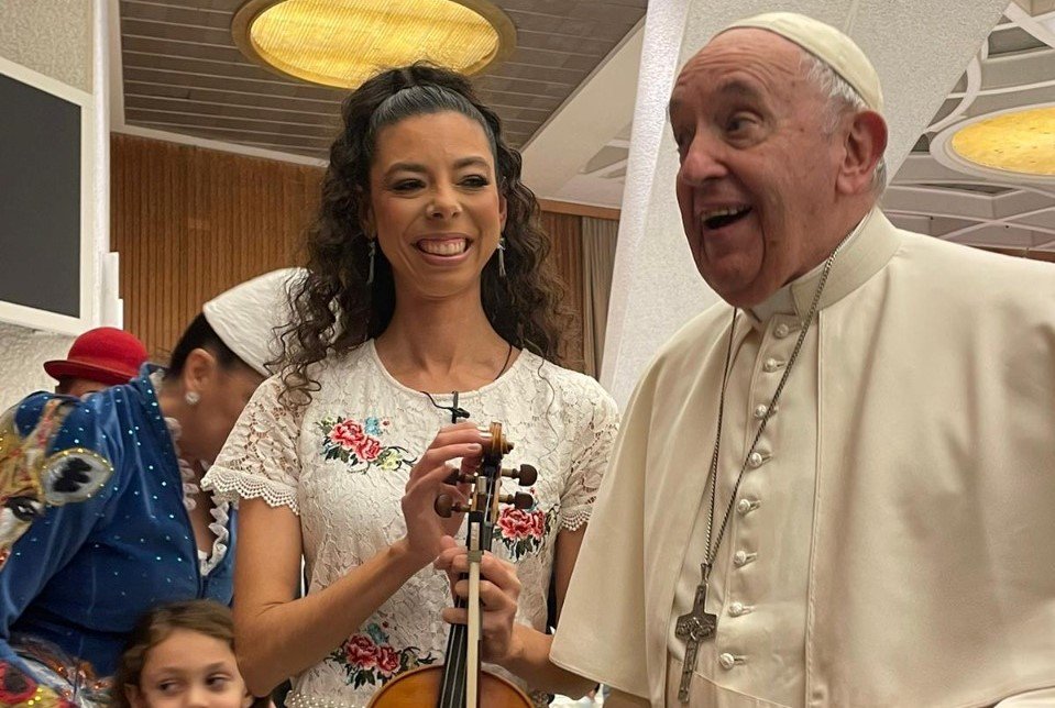Mary Rodrigues, 35 anos, violonista brasileira, vem se destacando no cenário mundial como a única conterrânea a participar de grandes eventos da Diocese de Roma como Concertos de Natal, Celebrações da Páscoa e outras ocasiões pra lá de especiais. Além disso, foi escolhida como tradutora oficial da Oração do Corista, composta por Don Marco Frisina, maior referência da música na Igreja Católica. Mas não para por aí, ontem (18), a artista nascida em Lorena, interior de São Paulo e criada na cidade de Americana, firmou mais um marco em sua trajetória musical e pessoal, ao encenar no aniversário surpresa, em comemoração aos 86 anos, da figura religiosa mais conhecida no mundo: o Papa.