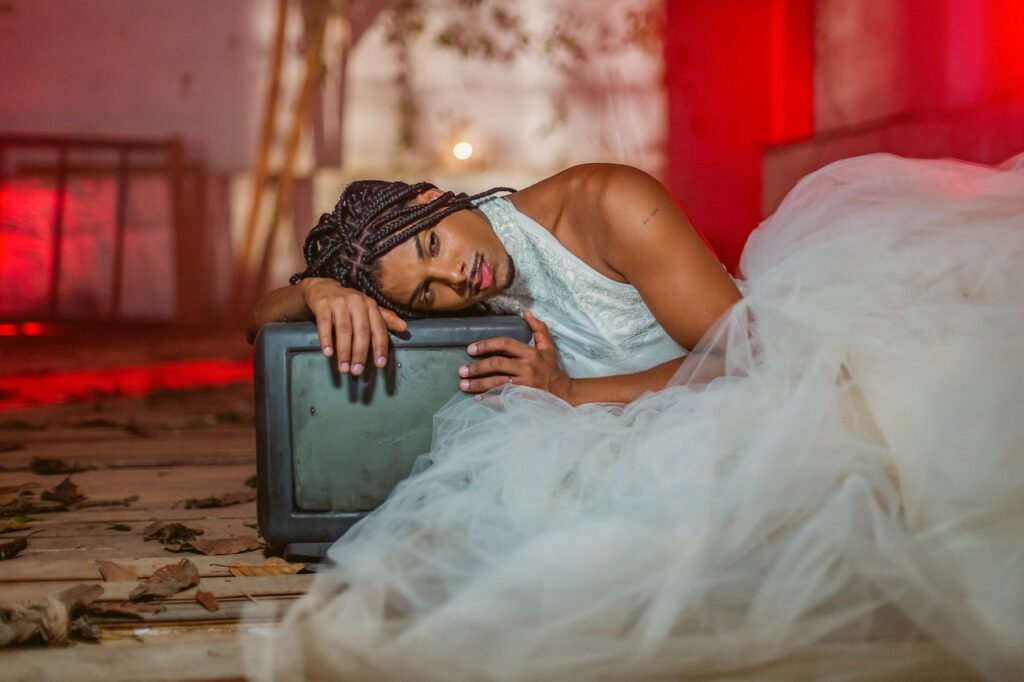 Ao mesmo tempo, WD entendeu a importância de trazer outros elementos que ajudariam a compor essa narrativa. O primeiro deles é o vestido de noiva, que para ele simboliza o ápice do afeto: “Quando uma pessoa está vestida de noiva, está embalsamada de amor. E quando eu rasgo o vestido e logo me arrependo quis retratar exatamente a dualidade da minha relação com o afeto, por anos”. O buquê de flores traz a intenção de que às vezes as pessoas só querem uma coisa simples, uma flor colhida no jardim. “Já com o crucifixo, eu quis mostrar que muitas vezes somos engolidos por uma religião tóxica, mas que eu entendi, renasci e não deixo mais que um tipo de fé agrida o existir de alguém”, reflete WD.